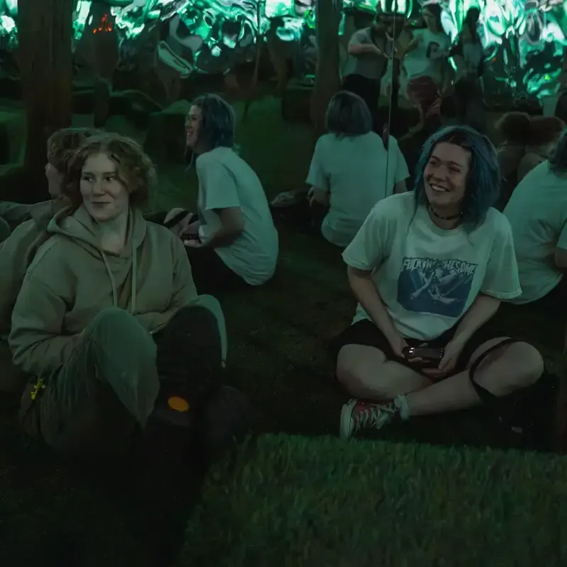 Scribblescape: Un refugio envolvente con grandes hojas de papel en las paredes donde puedes dibujar o escribir un mensaje a tu yo más joven.